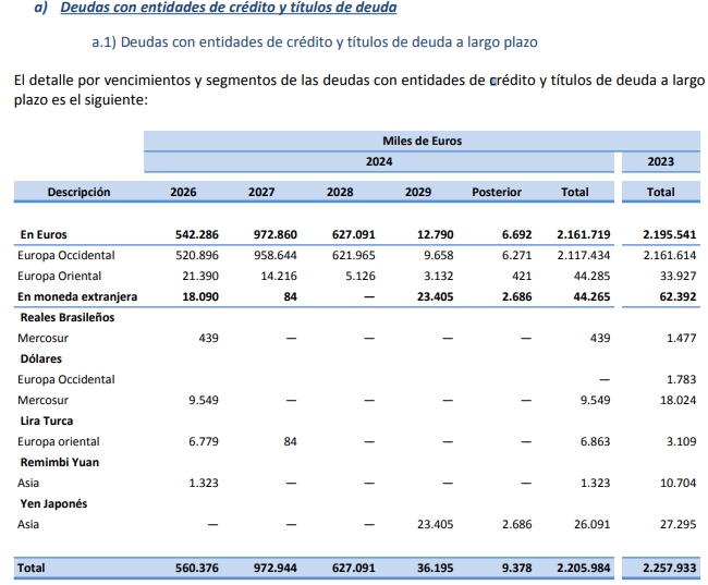 Deuda bien estructurada: La empresa ha refinanciado su deuda en varias ocasiones, asegurando costes financieros bajos y vencimientos diversificados hasta 2027-2028.