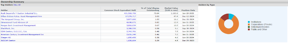 A pesar de su atractivo, la posibilidad de una OPA hostil es baja debido al fuerte control de la familia Riberas, que posee el 75% del capital y puede bloquear cualquier intento de adquisición. Además, el bajo free float (25%) dificulta que un comprador acumule acciones sin lanzar una oferta formal.