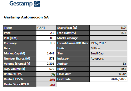 Baja valoración en el mercado: Gestamp cotiza a múltiplos bajos en comparación con su potencial de crecimiento. Los accionistas mayoritarios podrían considerar que el mercado no está reflejando su verdadero valor y optar por sacarla de bolsa para capturar ese potencial en privado.