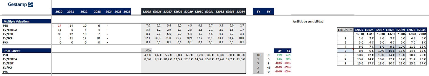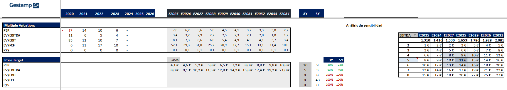 Valoración muy baja: Actualmente, Gestamp cotiza a múltiplos muy atractivos en comparación con su histórico y con otros competidores del sector. Su bajo PER y la relación EV/EBITDA reflejan una infravaloración significativa, especialmente considerando su capacidad de crecimiento y su posición estratégica en la transición del sector automotriz.