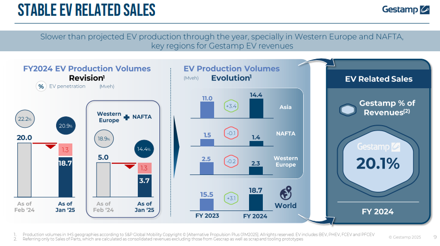Compromiso de los fabricantes con la electrificación: Con regulaciones más estrictas, especialmente en Europa y China, los fabricantes de automóviles están acelerando la producción de EVs. Dado que Gestamp trabaja con las principales marcas del sector, su exposición a esta transición es una oportunidad de crecimiento.