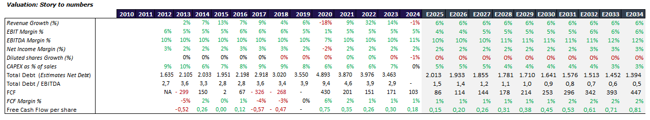 Consideramos razonable valorar GEST a 5x EV/EBITDA (muy modesto), podría valorarse a 7/8x dado el crecimiento estimado y nuestra previsión de aumento de márgenes pero penalizamos el escaso free-float del 25% y la ciclicidad de la industria, en este sentido, asumiendo un crecimiento de ventas del 6% anualizado (modesto, teniendo en cuenta el histórico y el backlog de proyectos), con márgenes del 10% que crecen progresivamente hasta alcanzar el 12% ). En este sentido, creemos que si el sector recupera ligeramente, como hará en el medio plazo, se amortiza parte de la deuda, lo que mejorará márgenes y generación de caja, no nos sorprendería ver un potencial de revalorización del 200-250% en el medio plazo, con un precio objetivo de 6,50-7,00 euros por acción.