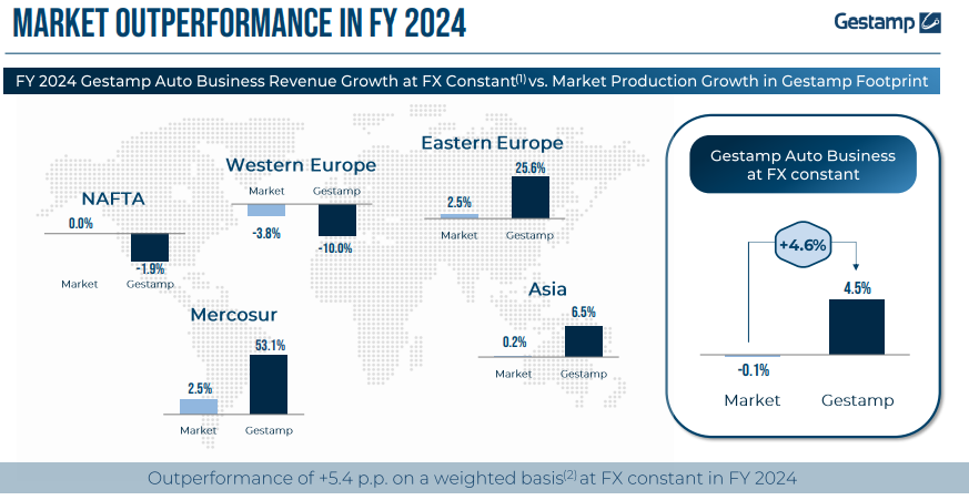 EBITDA subió un 4%, manteniendo un margen fuerte del 14%, lo que posiciona a Asia como la región más rentable de Gestamp.